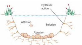 Q7. Which type of erosion is this? Water forces itself into cracks in the river banks, causing them to break up.