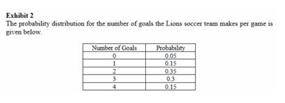 Q11. Refer to Exhibit 2, what is the probability that in a given game the Lions will score no goals?