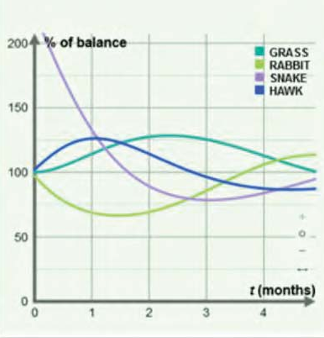 Q22. What most likely caused the rabbit population to decrease over the f irst time unit shown in the following graph? Pay close attention to the (y) axis | and what it is telling you.