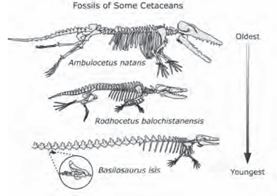 Q8. Cetaceans are whales and their rel- atives. The diagram shows some fossils of cetaceans.Which statement provides the best evidence that Am- bulocetus natans is an ancestor of Basilosaurus isis?