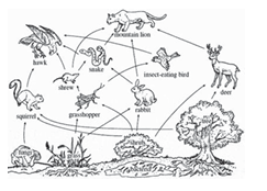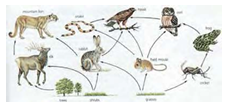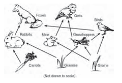 Q16. Based on the food web, which shows correctly the one way that energy flows?