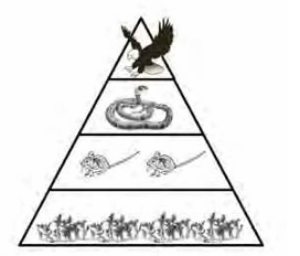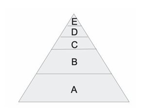 Q14. Looking at the image of a food pyramid layout, what letter best represents where you will find heterotrophs?