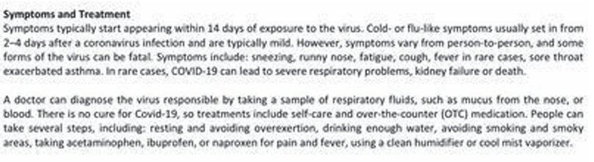 Q18. CORONAVIRUS QUESTIONS?: Read for Detail (RI.5.1; RI.6.1)Which is not a symptom of corona virus?