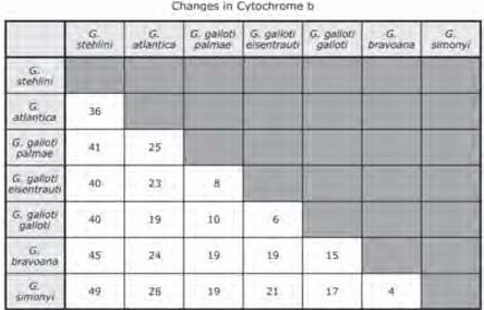 Q21. Researchers studying populations of lizards from the genus Gallotia on the Canary Islands compared the protein cytochrome b in different populations. The table shows the number of dif ferences in the cytochrome b protein between different populations.Which conclusion about the relatedness of the lizards do these data support?